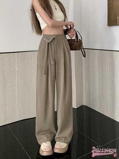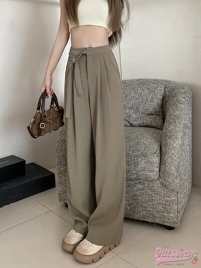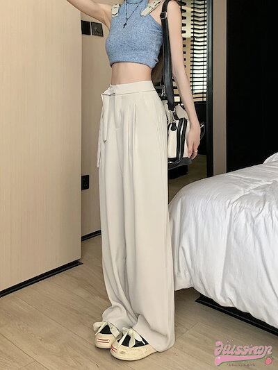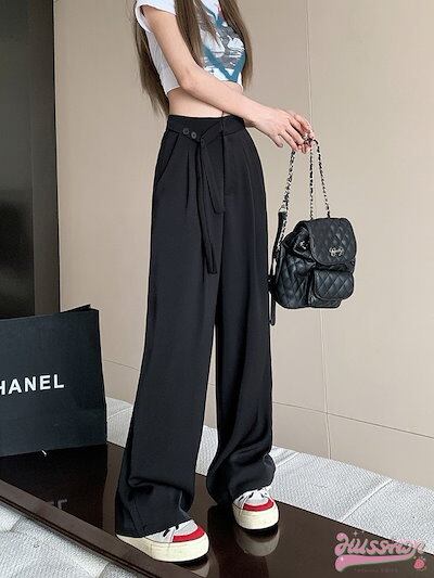 パンツ ロング丈 ワイド ストレート ゆったり ハイウエスト 脚長効果 美脚効果 細見え 秋 カジュアル ストリート シンプル 韓国ファッション レディース お出かけ