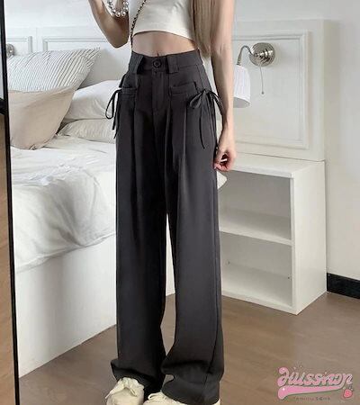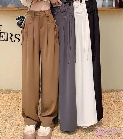 レッグストレートパンツ ボトムス スラックス ワイドパンツ タックパンツ スタイルアップ カジュアル きれいめ レディース ゆったり