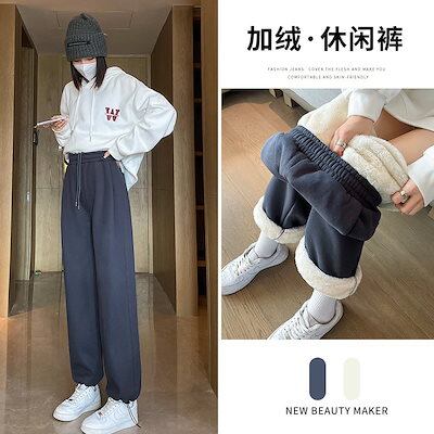 裏起毛パンツ 冬 防寒 ウール混紡 ワイドパンツ 秋冬 新作 ハイウエスト ゆったり カジュアルパンツ 裏起毛 厚手 ズボン レディースファッション