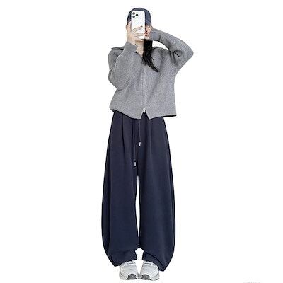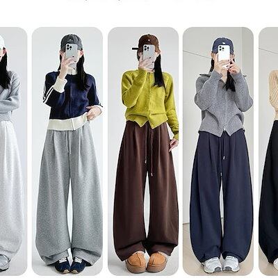 裏起毛パンツ 冬 防寒 秋冬 デザイン感 ゆったり ストレートパンツ ワイドパンツ スウェットパンツ レディースファッション