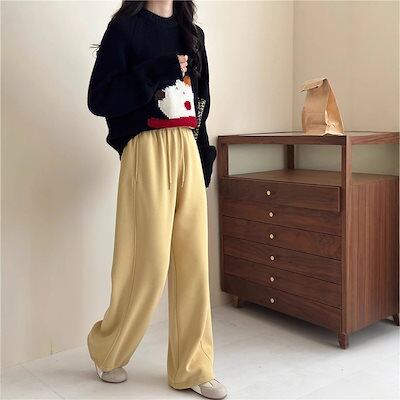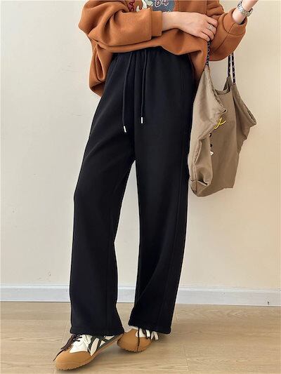 裏起毛パンツ 冬 防寒 裏起毛 厚手 カジュアルパンツ ゆったり ワイドパンツ スウェットパンツ レディースファッション
