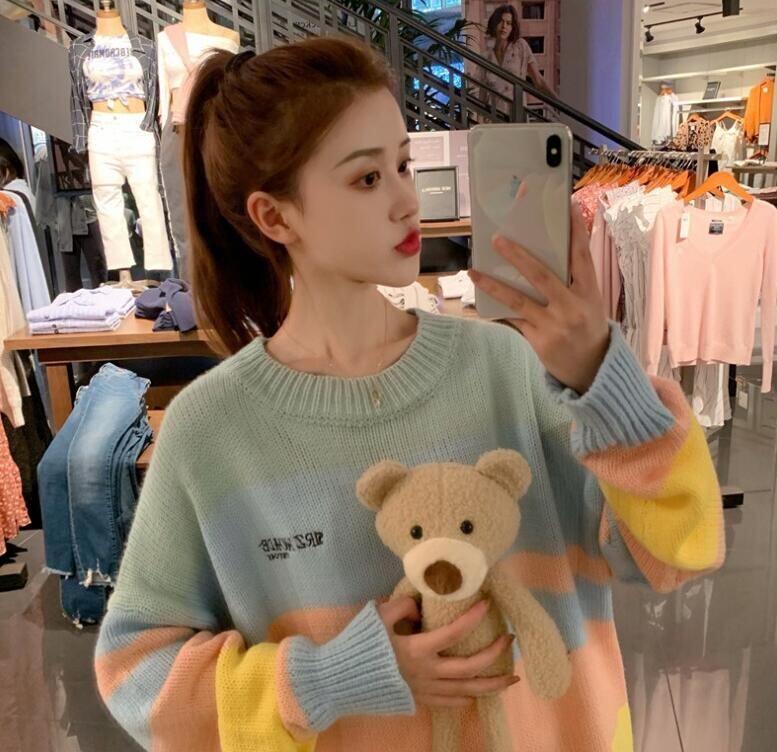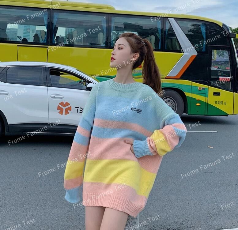 新しい秋と冬のニット女性用ニットプルオーバーセータールーズトップロングセーター
