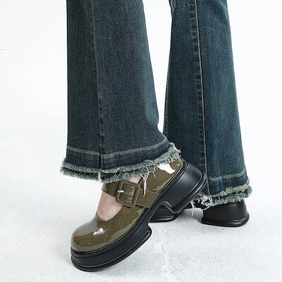 デニムかっこいいスラックスパンツ25の新作ハイウエストマイクロラッパ デニムパンツ おしゃれ パンツ レディース ワイドレッグ ゆったり 見えやせ カジュアルパンツ 垂れ感
