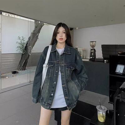 25初新作 入荷ヴィンテージ ウォッシュ 開き襟 ジャケット トップス カジュアル デニム アウター フード付き ジャケット風 レディーストップス アウター ゆったりショートトップス