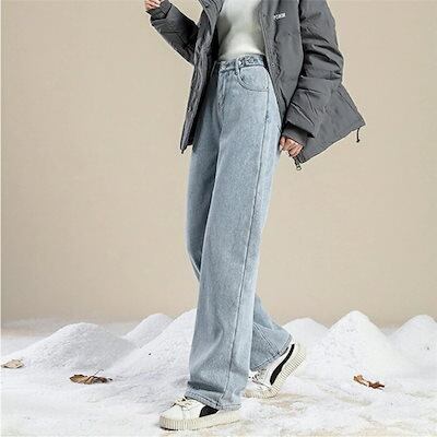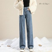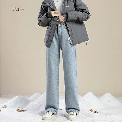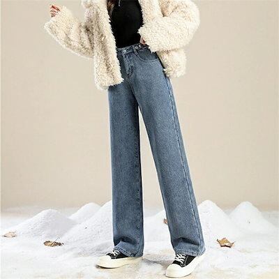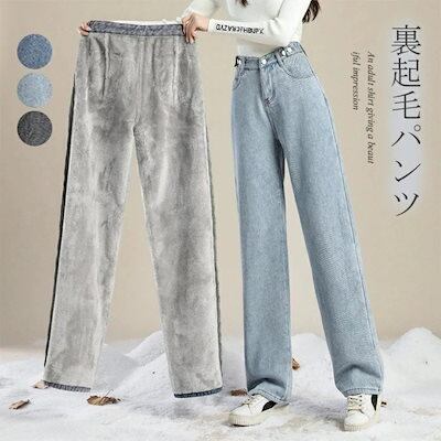 【裏起毛】パンツ レディース 秋冬 デニムパンツ ストレートパンツ ハイウエスト 着やせ 垂れ感 ロング丈パンツ ウォーム 厚手 デニムパンツ ジーンズ ゆったり 裏起毛パンツ 可愛い 防寒