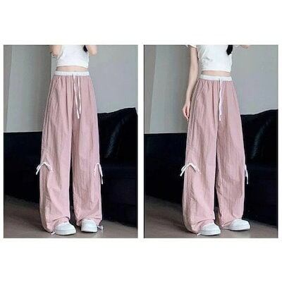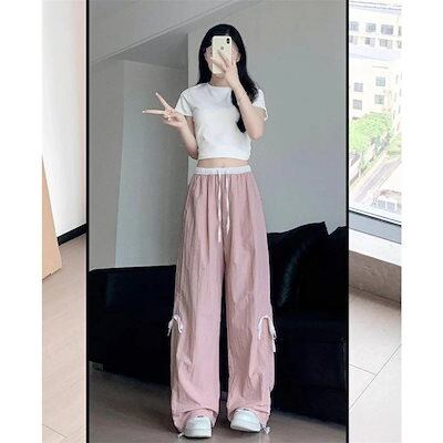 [入荷]ダンスパンツ 白 ピンク 青 ジャージ ダンス 衣装 レディース 韓国風 ボトムス ロングパンツ 長ズボン リボン飾り ゆったり ダンスパンツ ジョギングパンツ 運動