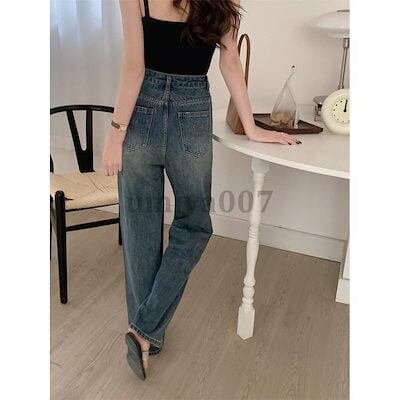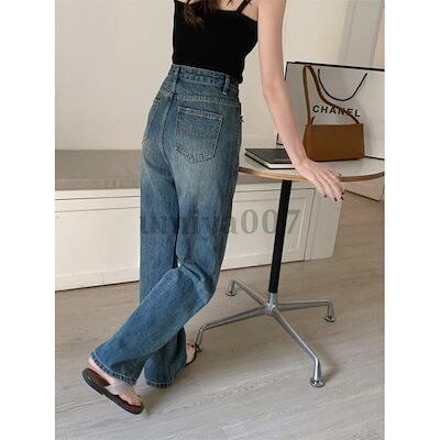 新作 レディース 体型カバー パンツ ゆったり ジーンズ 大人のゆるデニム デニムパンツ チノ 深め 韓国ファッション
