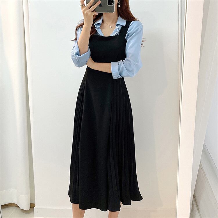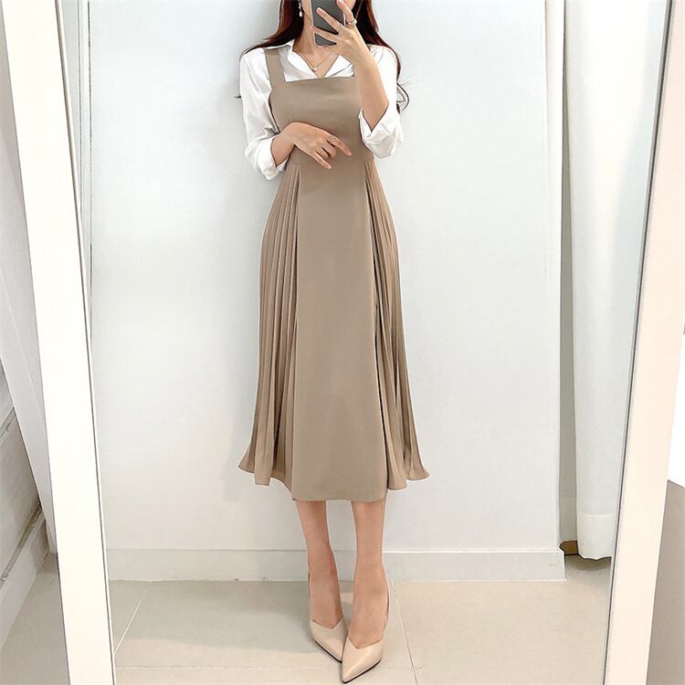 着痩せ効果 通勤する シャツ ハイウエスト セットアップ エレガント キャミワンピース ロングスカート