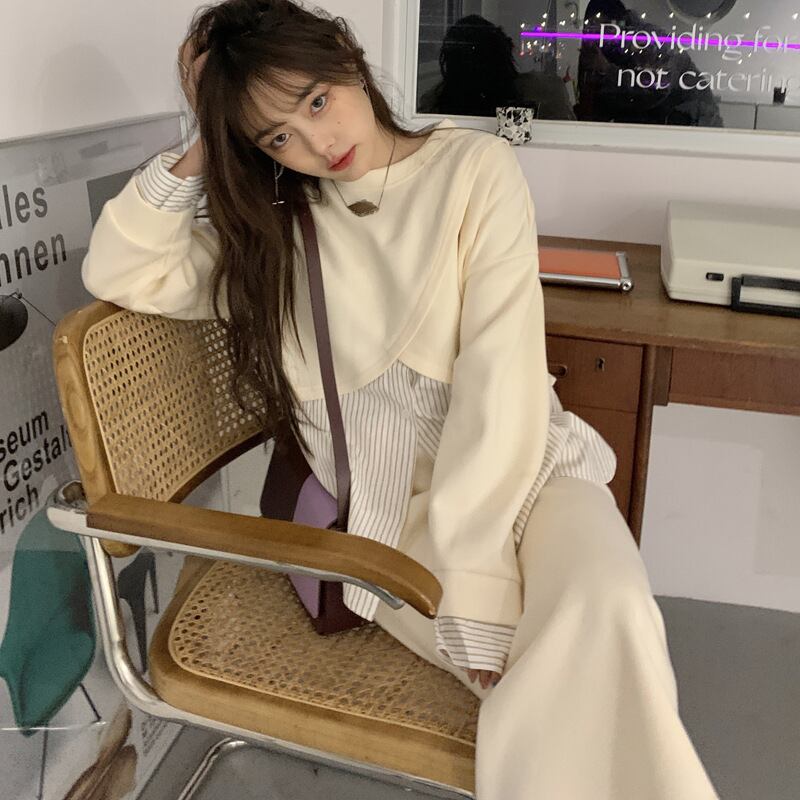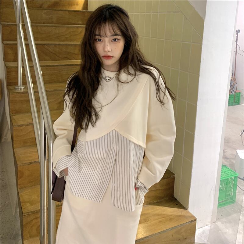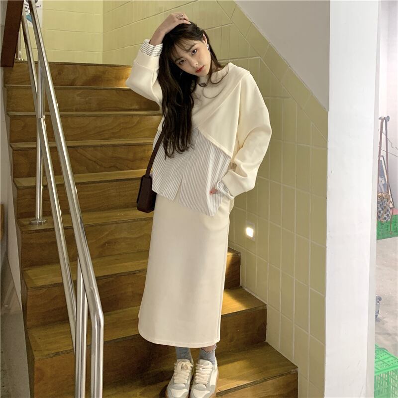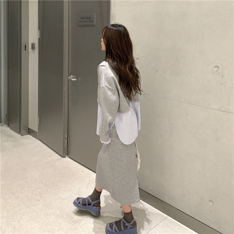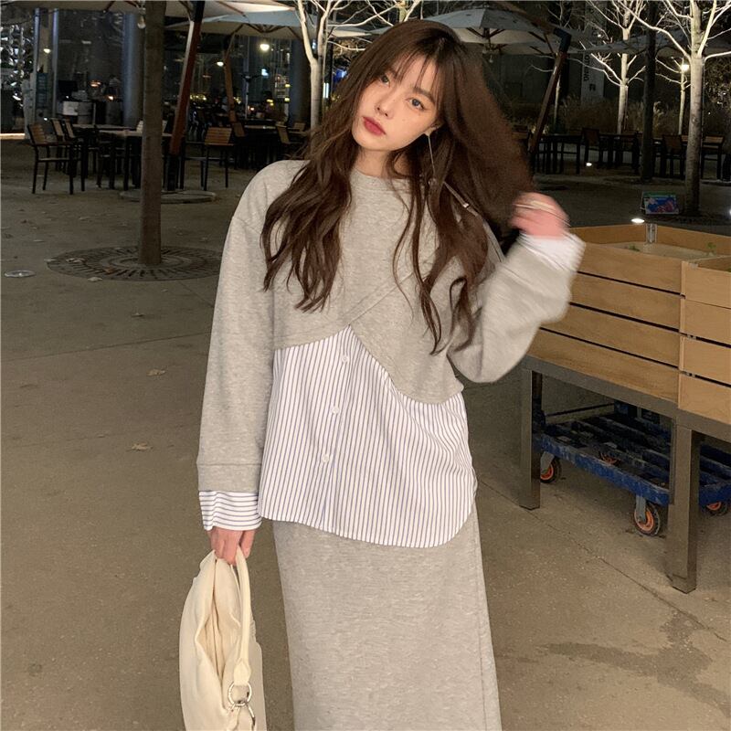 2022春新作 プルオーバー ロングスカート 2点セットアップ フェイクレイヤード 韓国風 カジュアル