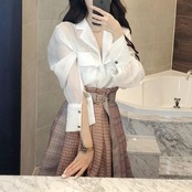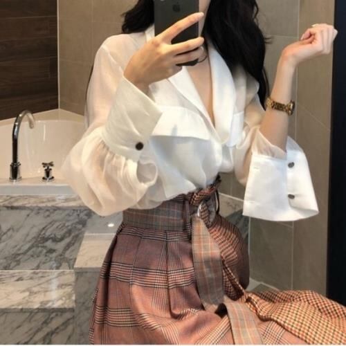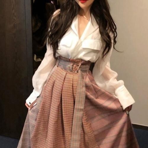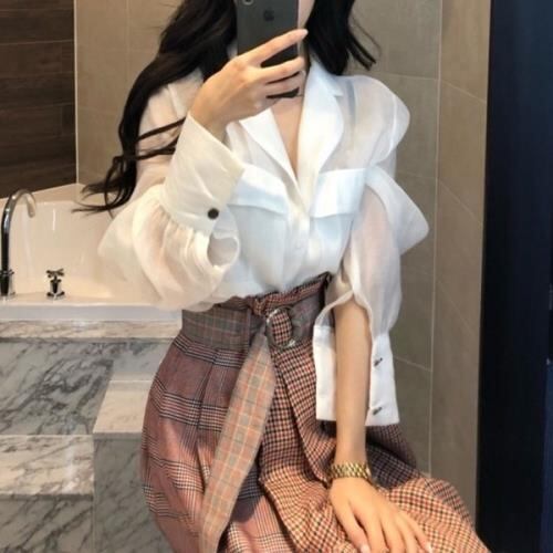 セットアップ?ブラウスとアシンメトリースカートの可愛いツーピースレディースファッション