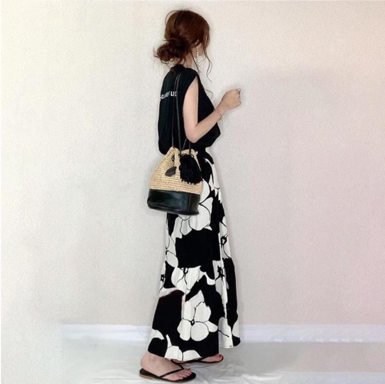 【2022年夏新作】韓国レディース服 シャツ+ロングスカート セットアップ ノースリーブ