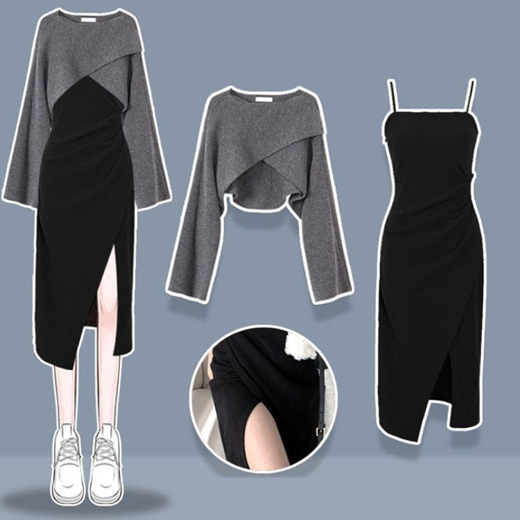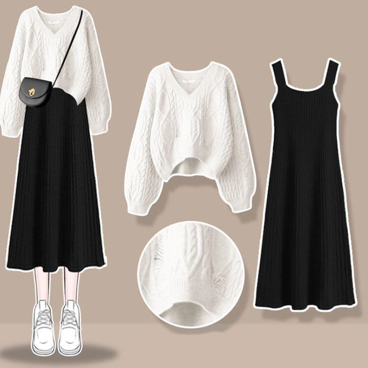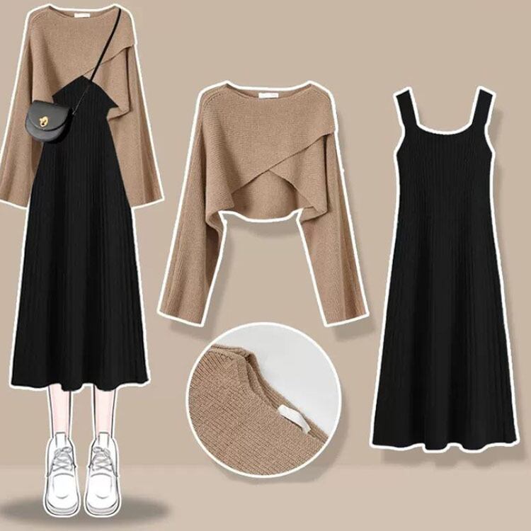 レイヤード ニット セットアップ ワンピース 長袖 ニットセーター 上下セット ニットセッ
