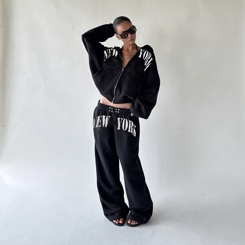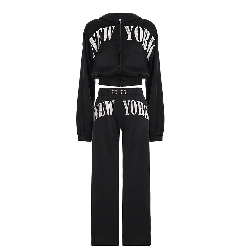 英字プリント セットアップ レディース スウェット上下 ストリート風 スポーティファッション