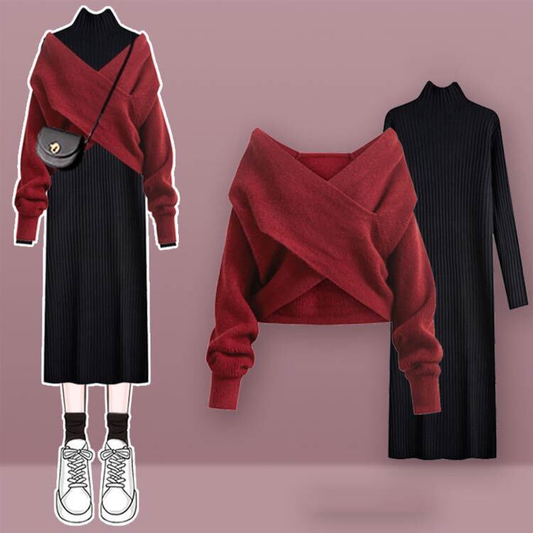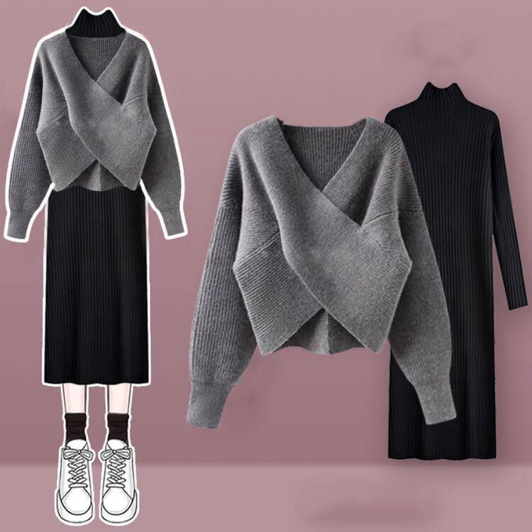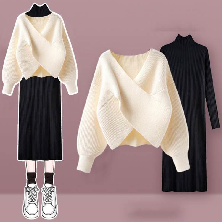 ニット セットアップ レディース ニットセーター タートルネック 長袖 ワンピース 2点セ