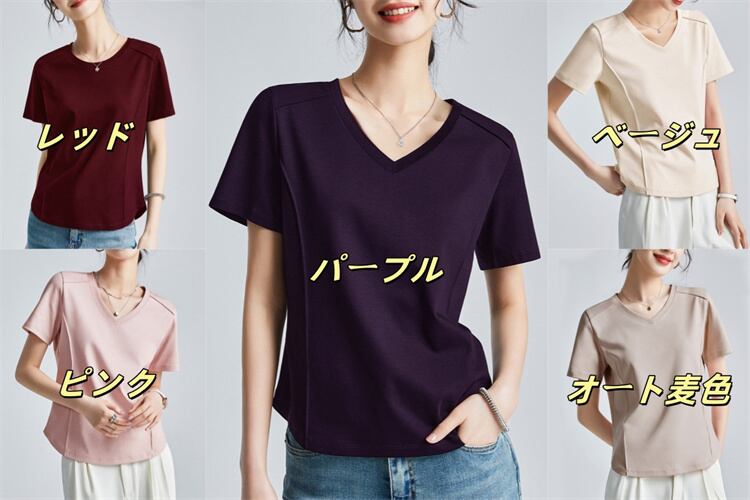 トレンド感をマーク 早い者勝ち【トレンド新作】Vネック/丸首 正肩Tシャツ 2025夏 セットアップ対応