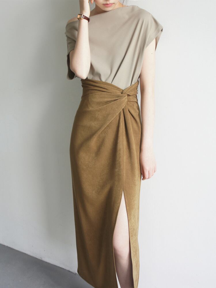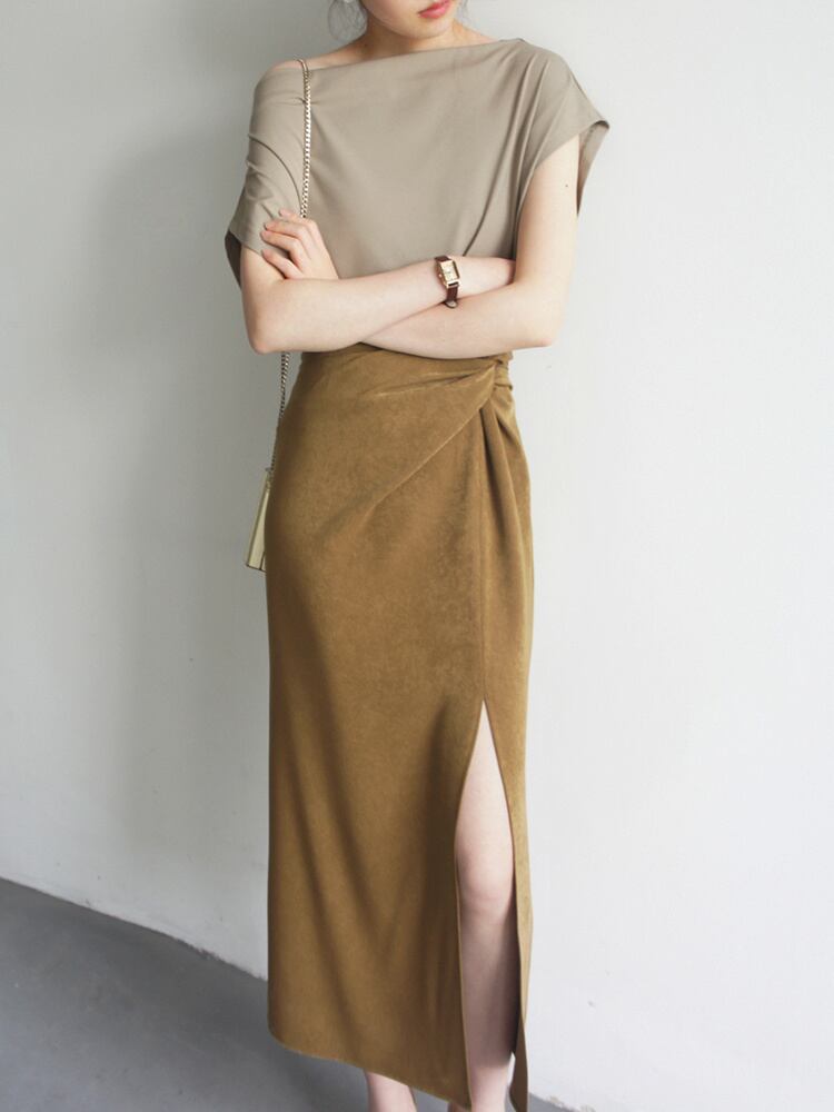 大人の魅力高まる 早い者勝ち 大人可愛い2点セット ショートスリーブTシャツ&膝下丈スカート
