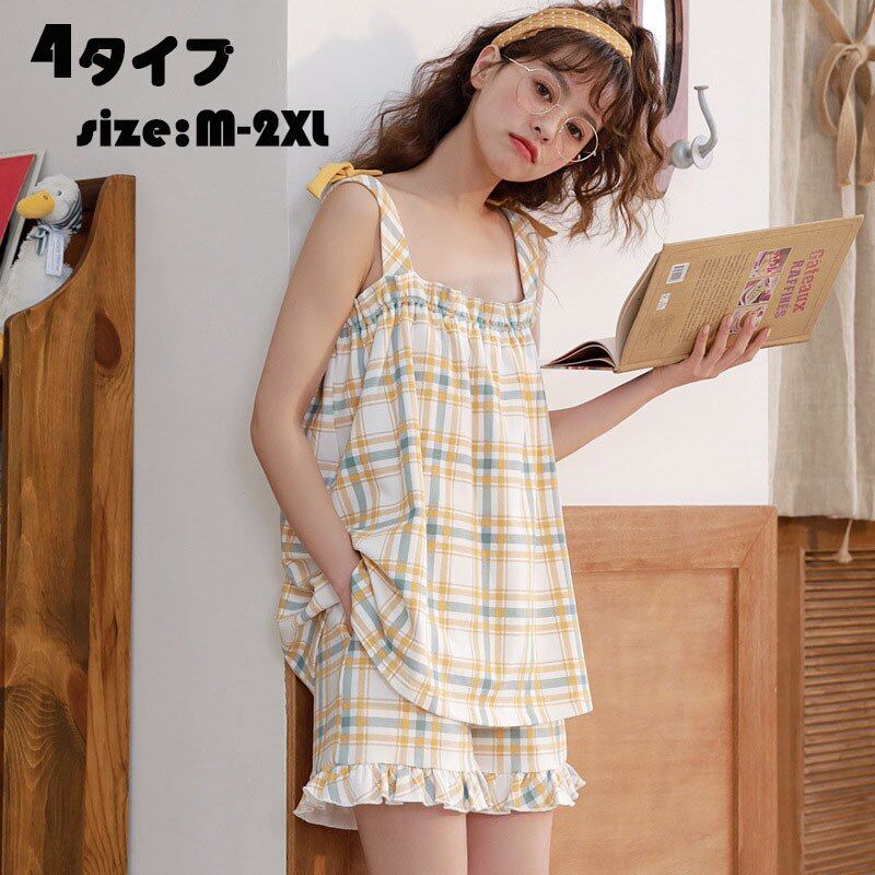 パジャマ レディース 夏 ノースリーブ 2点セット セットアップ ルームウェア キャミソール