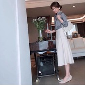 韓国ファッション セットアップ レディース シャツ+スカート 長袖Tシャツゆったり 2点セット