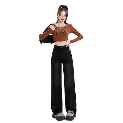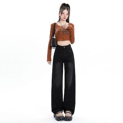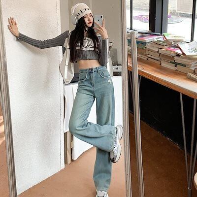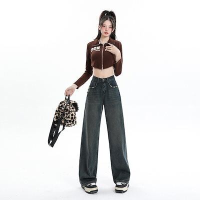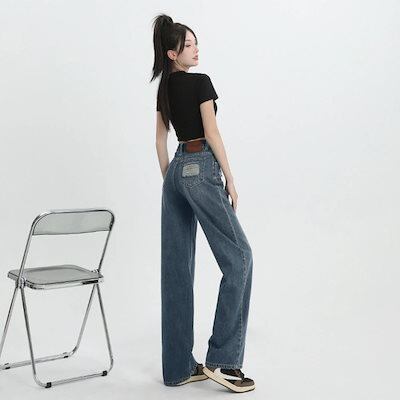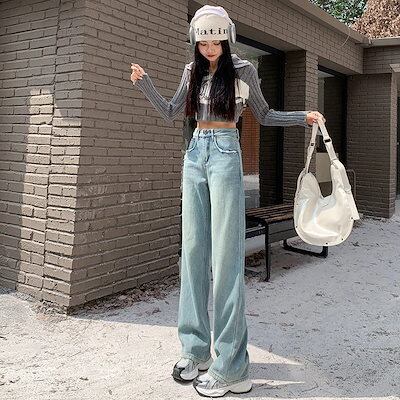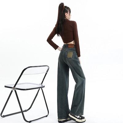 デニムかっこいいスラックスパンツ25 デニムパンツ おしゃれ パンツ レディース ワイドレッグ モップパンツ ハイウエストでゆったり 見えやせ カジュアルパンツ 垂れ感