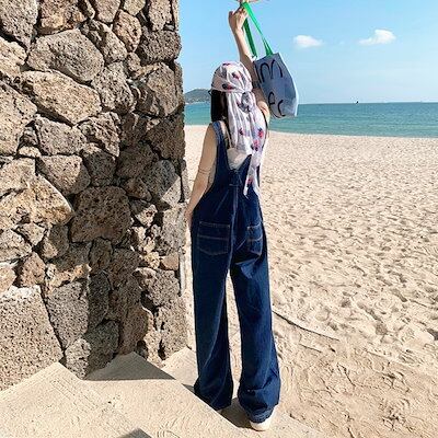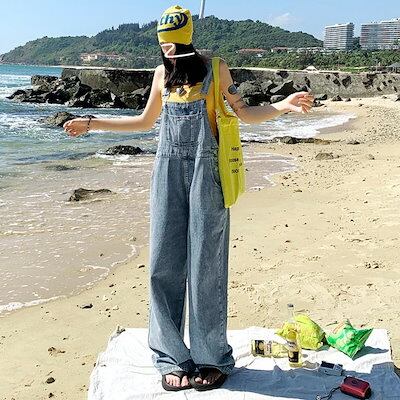 コーデ完成サロペット人気 レディース 紺色の デニムパンツ 体型カバーファッションゆったり パンツ ワイドパンツ