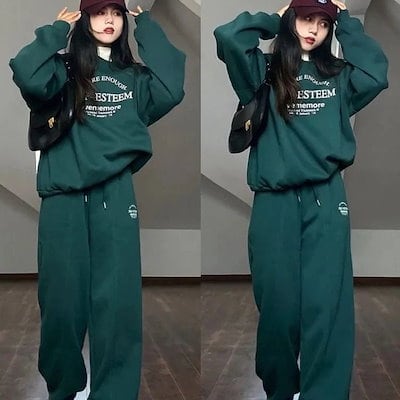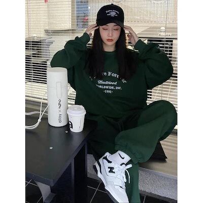 アメリカンレトロカジュアル セットアップ レディース スウェット上下セット ゆったり衛衣パンツ 2点セット