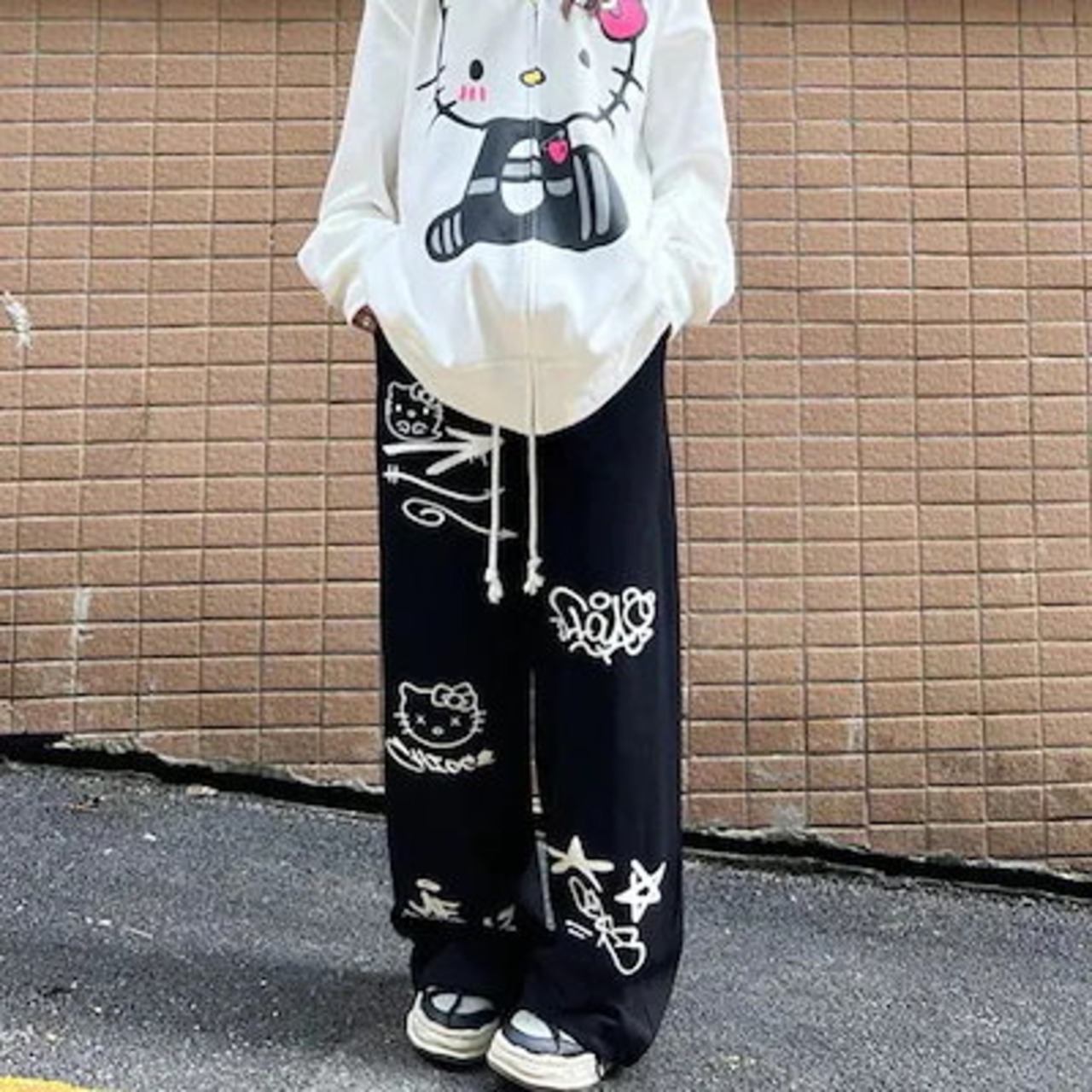 アメリカ プリント レディース カジュアル ズボン ヴィンテージ ゆったり 落書き ヒップホップ 流行り 運動ズボン