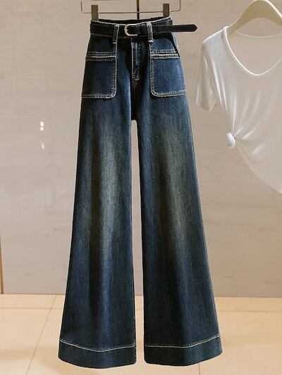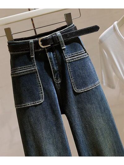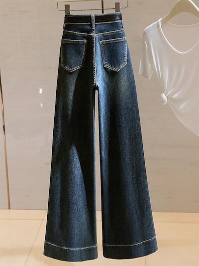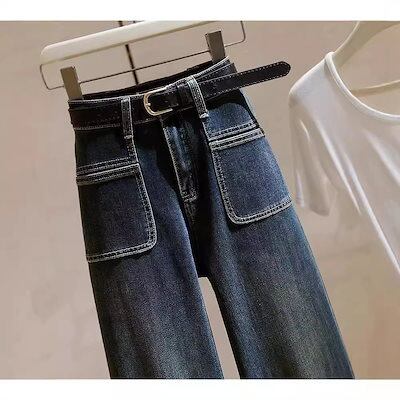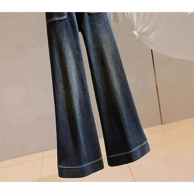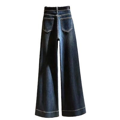 ハイウエスト ワイドレッグ デニム レディース 春秋 新作 レトロ ストレッチ 着回し ゆったり ストレート 痩せ見え ミクロ フレアパンツ