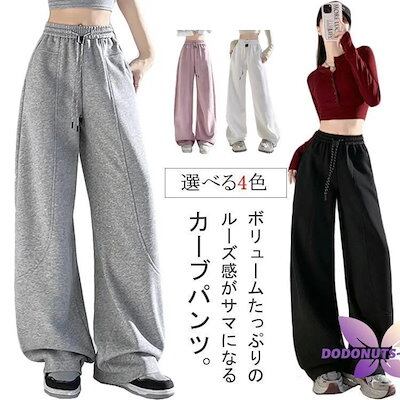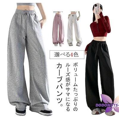 [8月の大上新] カーブパンツ レディース スウェットパンツ バレルレッグ ゆったり ポケット付き スウェットパンツ おしゃれ ウエストゴム 部屋着 体型カバー 美入荷