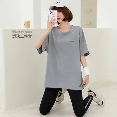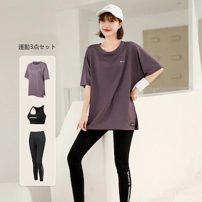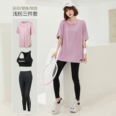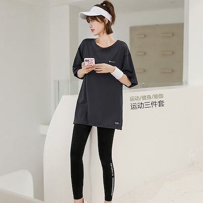 【3点セット】新作 おしゃれヨガウェア上下セット レディース ラージサイズのスポーツスーツ女性用フィットネスウェアゆったり夏用おしゃれヨガウェアランニングで痩せて見える速乾 ジャージ ヨガパンツ