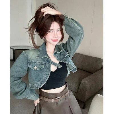 コーデに役立つデニムジャケットファッション 早 ゆったり カジュアル アメリカンレトロ デニムコートアウター レディース トップス デザインデニムジャケット