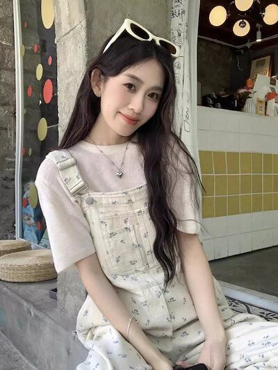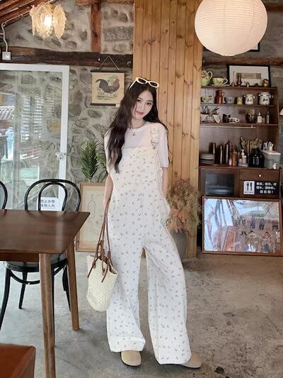 韓国 花柄デニムサロペット春2025新作ゆったりワイドパンツ コーデ完成!サロペット レディース オールインワン レディース ワイドパンツ サロペットパンツ