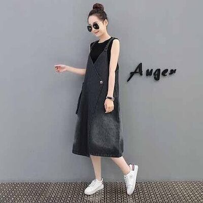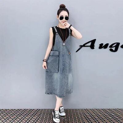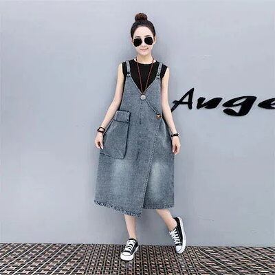サロペット 2色 サロペット オールインワン レディース 体型カバー デニムスカート ゆったり オーバーオール ロングパンツ