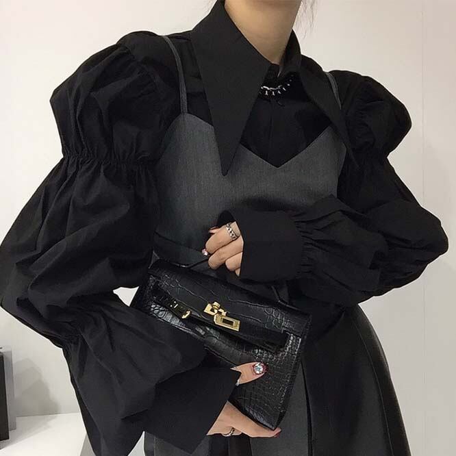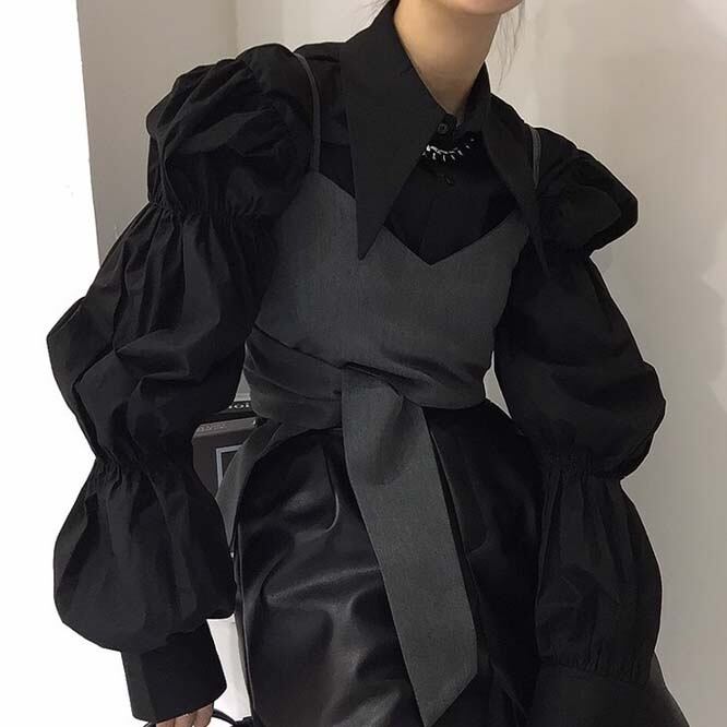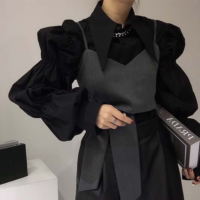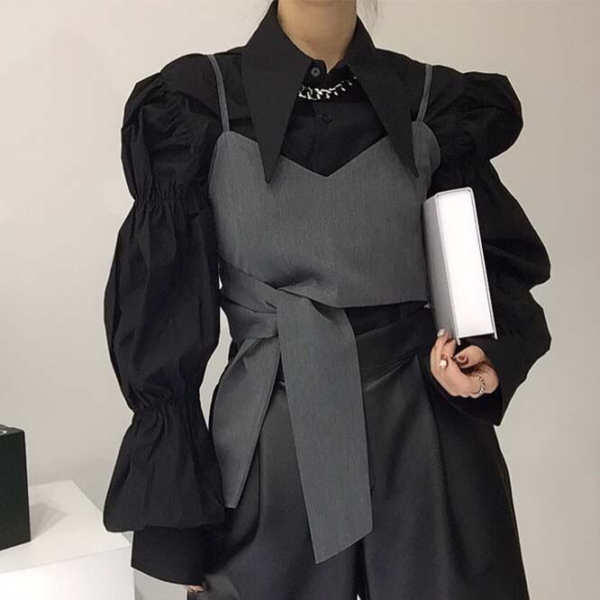 【秋新作】韓国風レディース服 ゆったり エレガント chic きれいめ 長袖シャツ&キャミソール セット