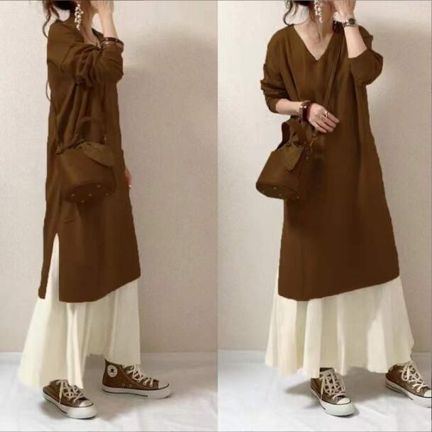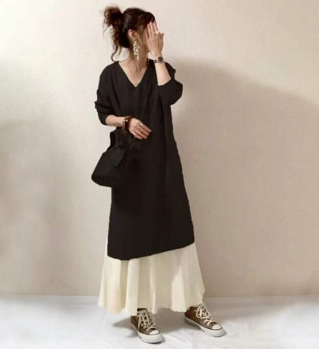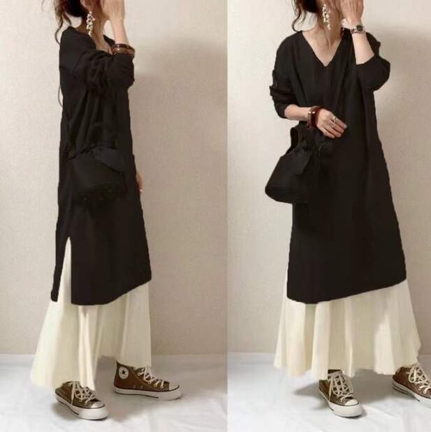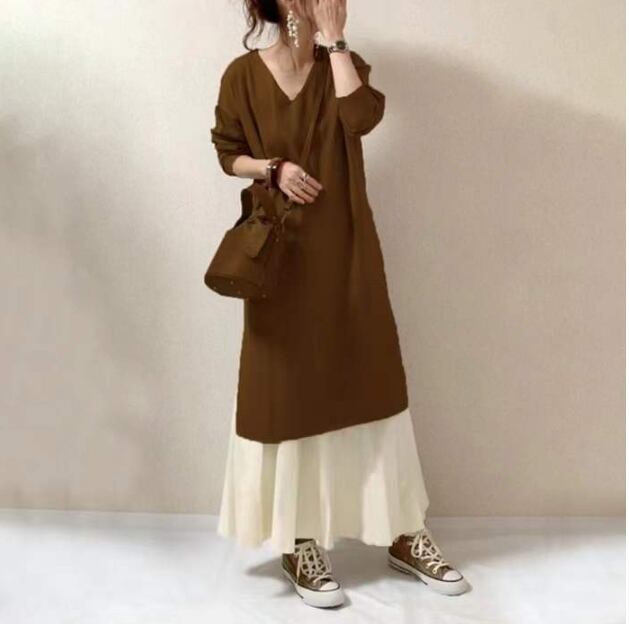 【2024年秋新作】レディース服 ワンピース vネック ロングスカート セットアップ 2色展開
