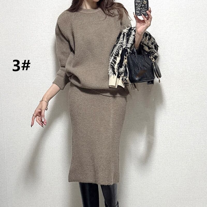 2026年新作 ニットトップス プルオーバー 上下セット 2点セットアップ ニットスカート おしゃれ