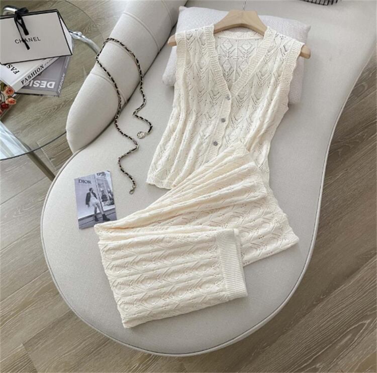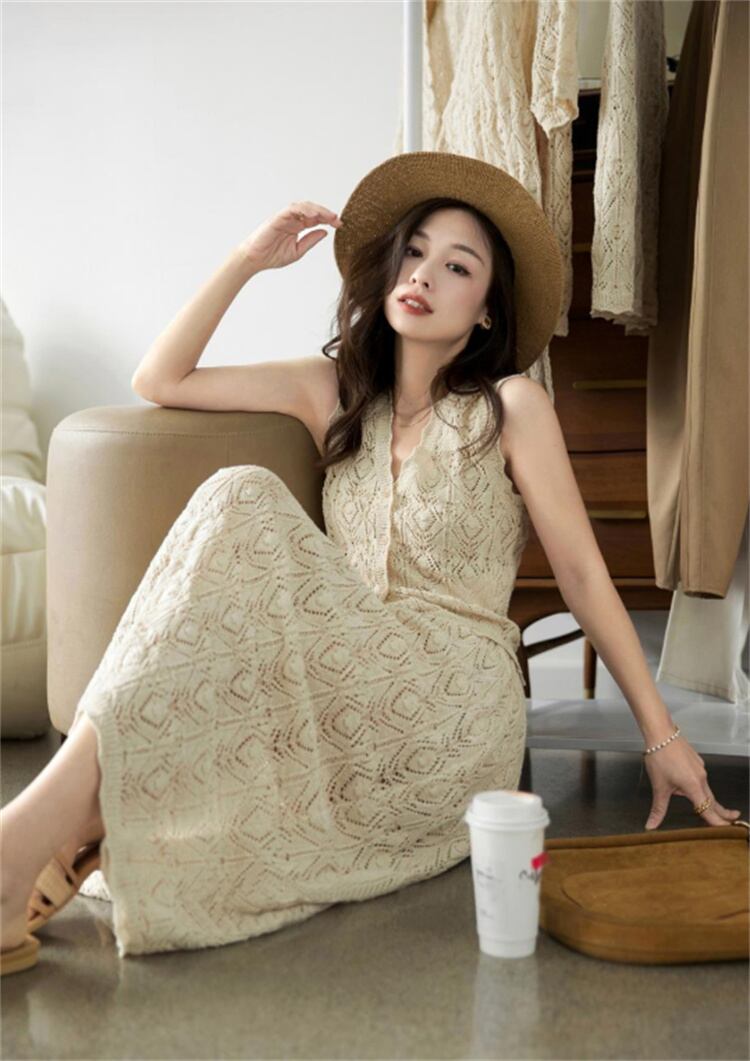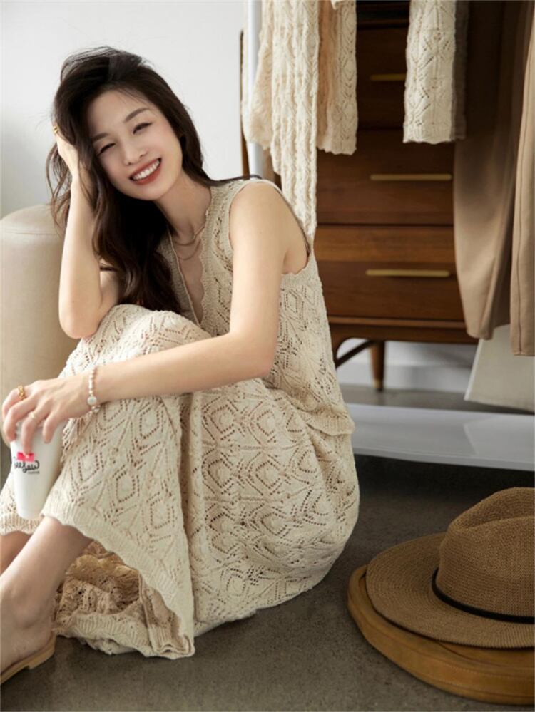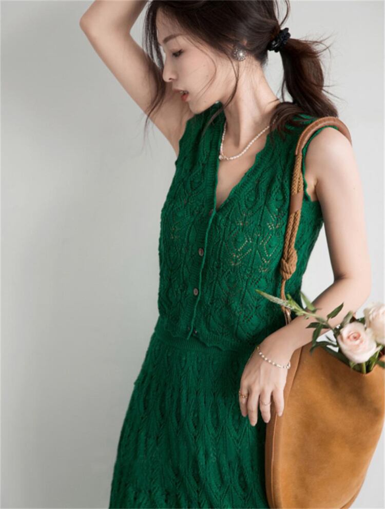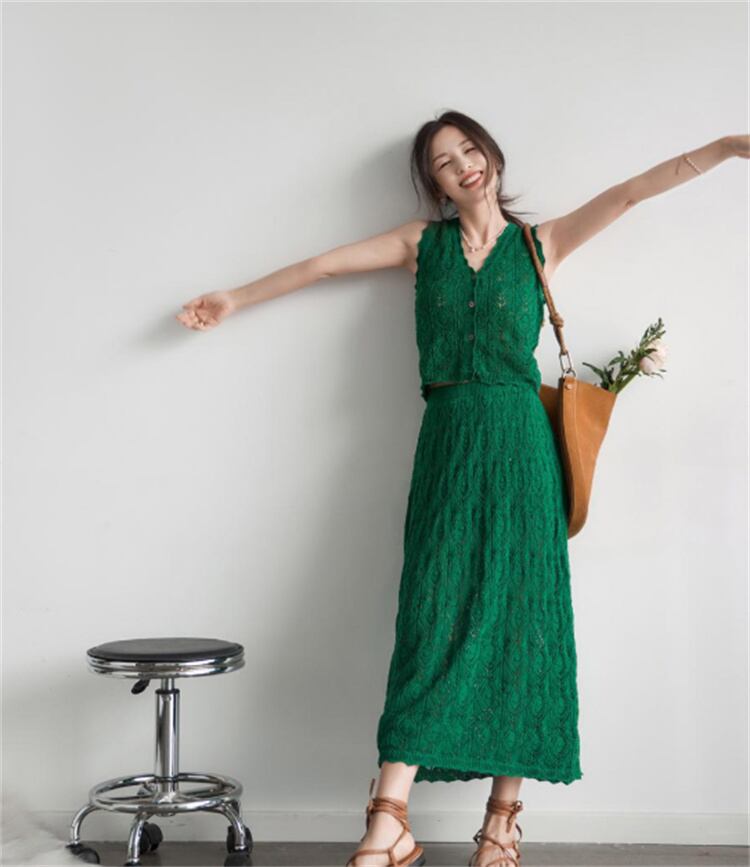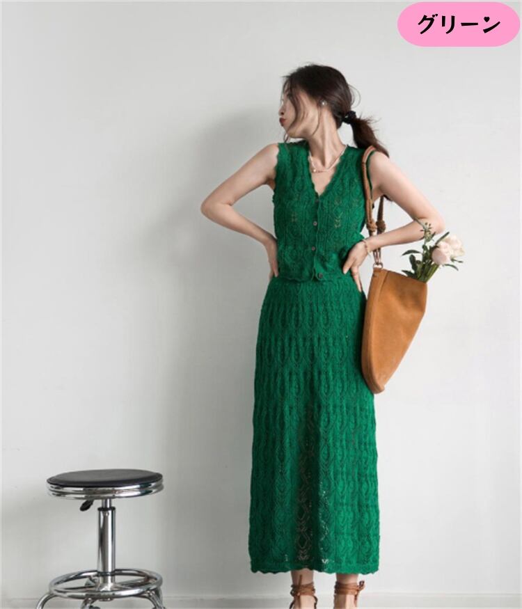人気沸騰 Vネックニット+ロングスカート2点セット 春の軽やかシルエットを叶えるレトロリゾートスタイル