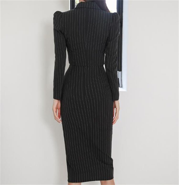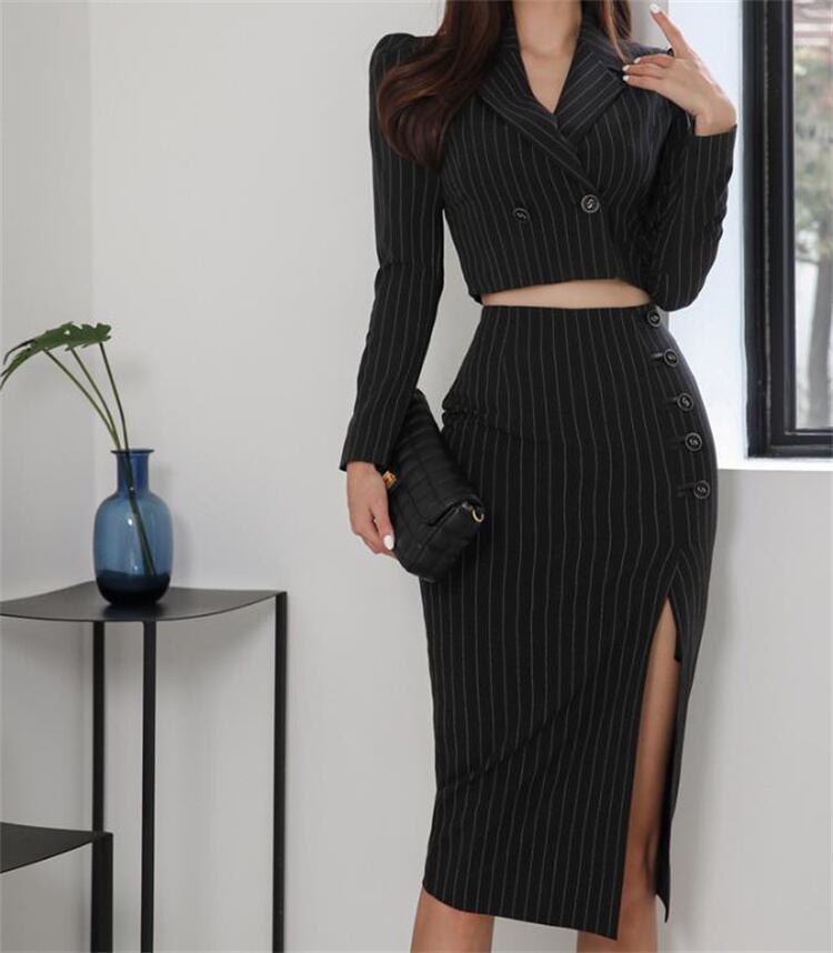 秋 スタイリッシュ ライン柄 ジャケット+ロングスカート 2点セット