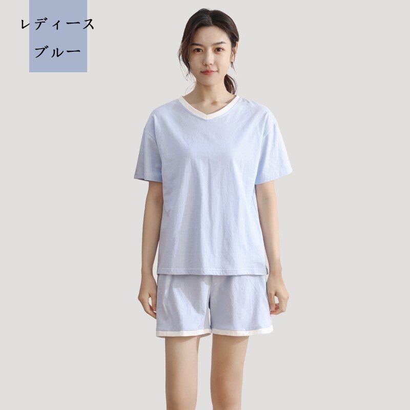 パジャマ カップルペアルック メンズ レディース 夏 セットアップ 綿 半ズボン 半袖 薄手