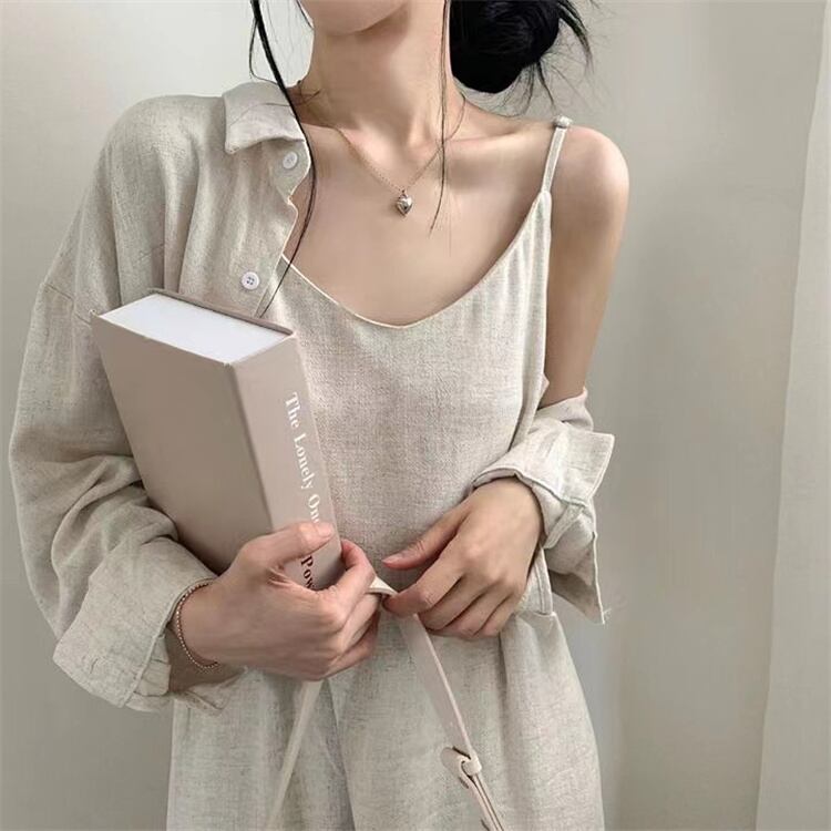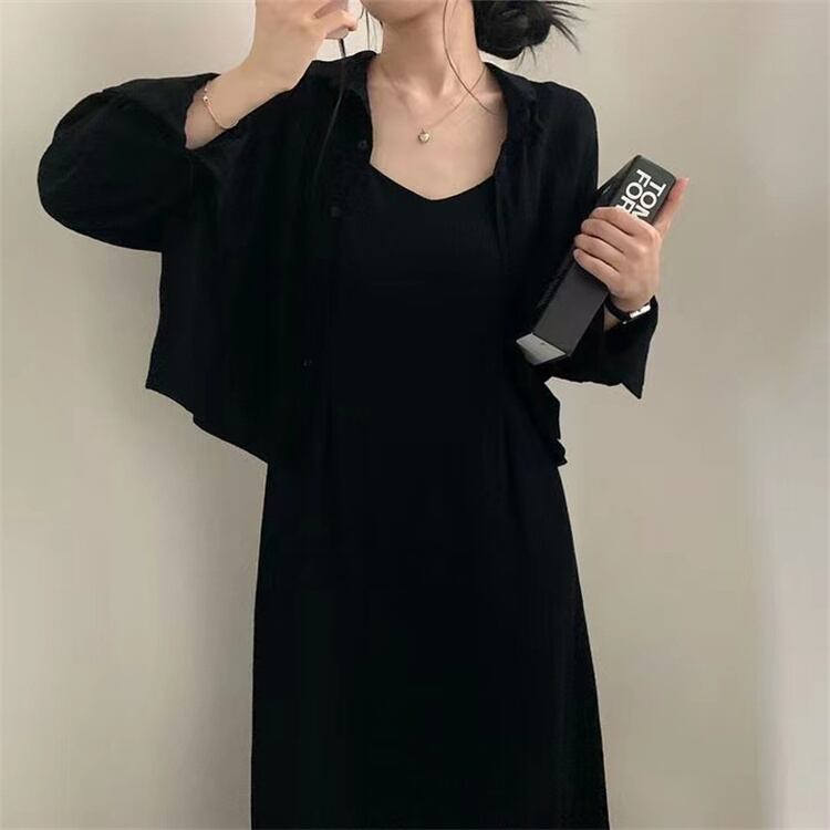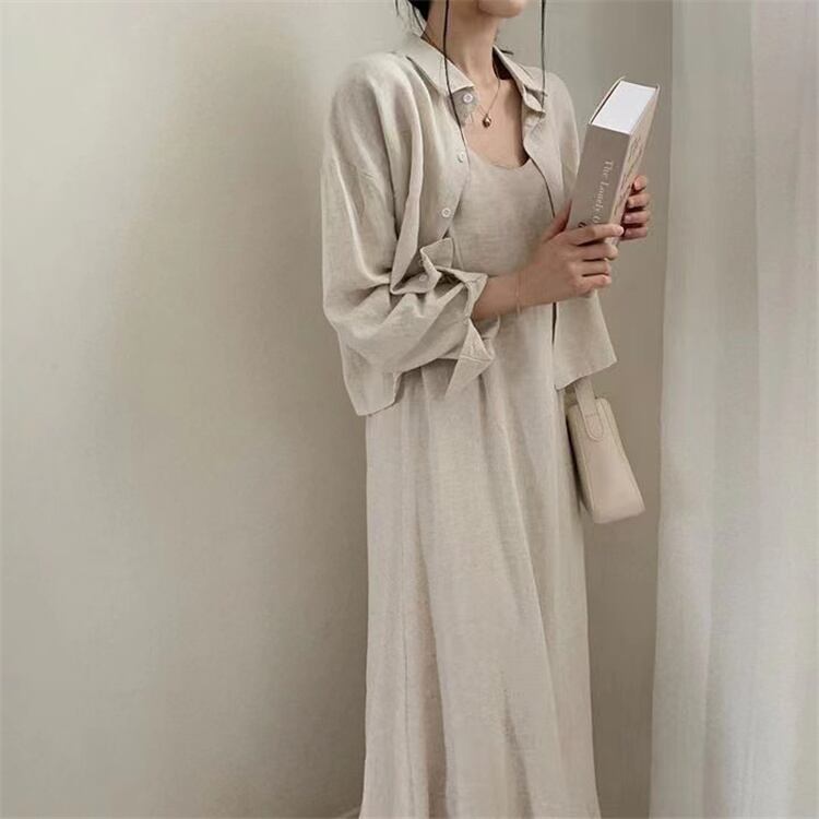 簡単スタイルアップ そよ風テイストの2点セット 春ロングワンピース+シャツ風アウター