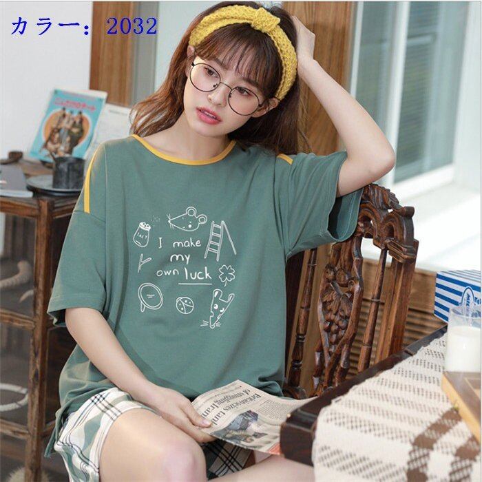 パジャマ レディース ルームウェア 半袖 部屋着 セットアップ 2点セット Tシャツ 短パン