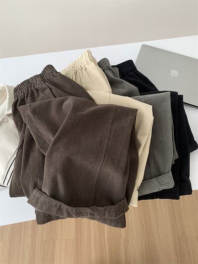 2026秋冬応援コーデュロイパンツ レディース ワイドパンツ 秋冬 コーデュロイ パンツ ゆったり ロング丈 ボトムス ウエストゴム ストレートパンツ ワイド 9分丈 ロングパンツ ズボン 春 秋 カ