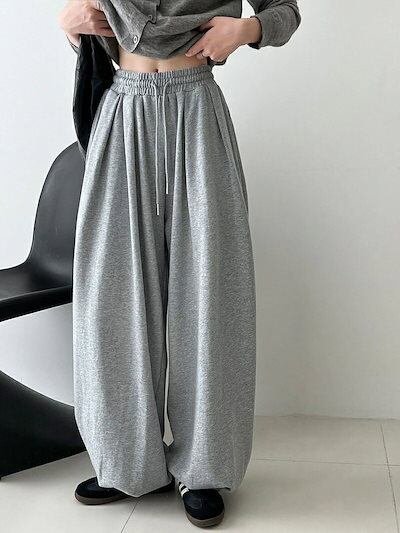 2026秋冬応援スウェットパンツ レディース 綿100 ワイドパンツ バルーンパンツ 大きいサイズ きれいめ スウェット パンツ ワイド バルーンシルエット 裾タック ボトムス 秋 冬 春 ウエストゴ