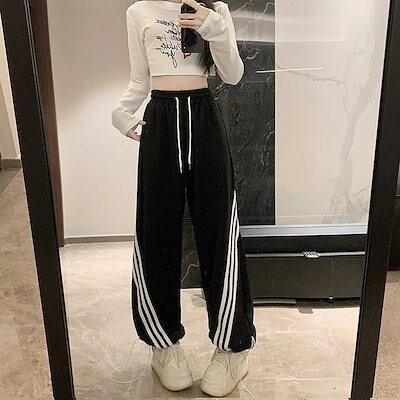 裏起毛 スウェットパンツ レディース ワイドパンツ ハイウエスト 韓国 ズボン 大きいサイズ 春夏秋冬 [ 3 カラー ] 101 ロングパンツ