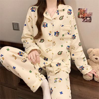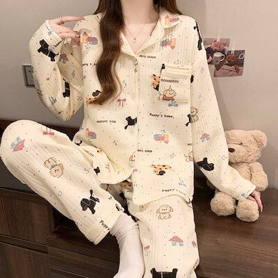 【2026新作】パジャマ 綿 レディース 長袖 ルームウェア 可愛い 前開き ロングパンツ 春秋冬 寝間着 ナイトウエア 着心地 部屋着 おしゃれ 入院 産後 旅行