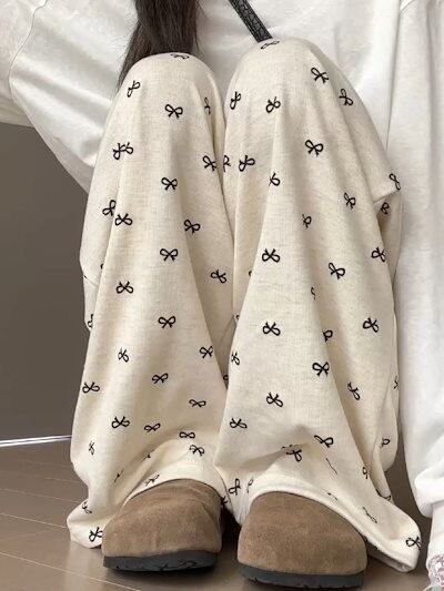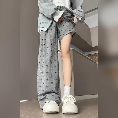 2025春夏 パンツロング丈 ハイウエストゆったりストレートモップパンツウエストゴム 脚長効果美脚効果細見え春カジュアル 黒白韓国系ファッションレディースサイドお出かけおしゃれ かわいい衣装トラック