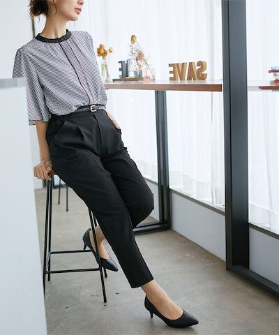 Honeys美ージーテーパードパンツ ボトムス パンツ テーパード レディース 白 黒 センタープレス 春