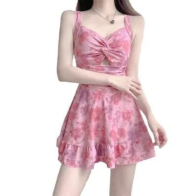 レディース セット ラッシュガード オープンバック 韓国 花柄 体型カバー クロスストラップ ワンピース ビキニ ヌーブラ 水着 ファッション