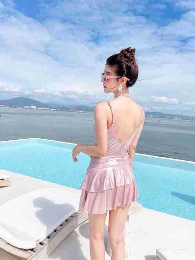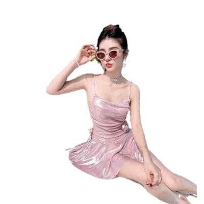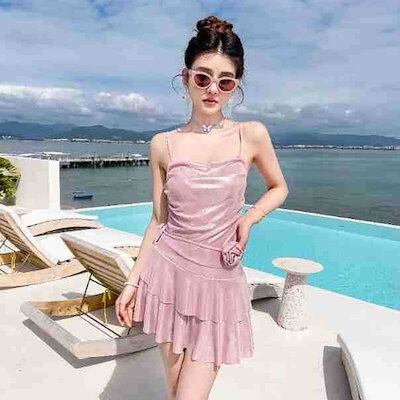 水着2025夏やや太めの女子カバー肉純欲スタイルピンクハイエンドセクシースカート保守温泉