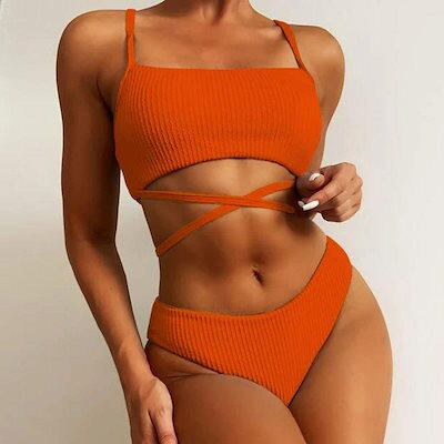 衣類2025セクシーな波柄ハイウエスト無地スプリット水着レディース