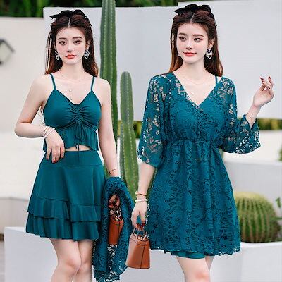 水着 レディース 2025 温泉着痩せ&お腹カバー分割3点セット 大きいサイズ コンサバ 冬水着
